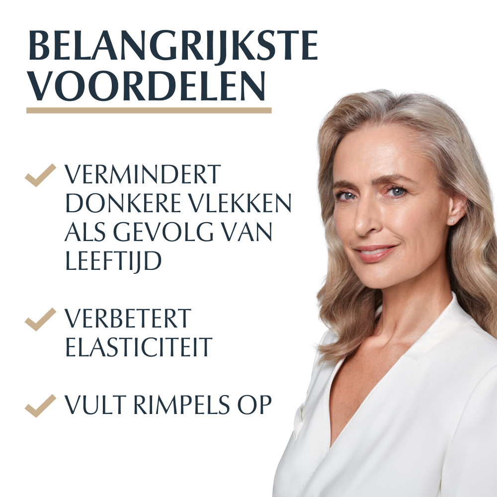 - Minder rimpels: De formule met Hyaluronzuur van hoog en laag moleculair gewicht vult diepe rimpels zichtbaar op.