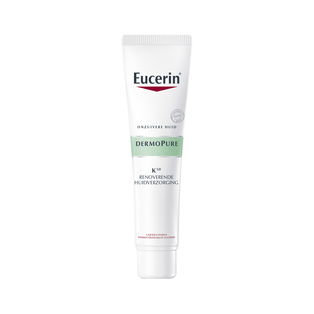 Eucerin DermoPure K10 Renoverende Huidverzorging is een actieve behandeling met 10% Hydroxy-Complex dat de poriën vrij maakt en onzuiverheden zichtbaar vermindert en voorkomt. De innovatieve Eucerin DermoPure K10 Renoverende huidverzorging is speciaal samengesteld om zichtbare puistjes, papels en pustels te verminderen en acnelittekens te doen vervagen. Het is geschikt voor alle lichte tot ernstige vormen van acne en heeft een drievoudige werking. Eucerin DermoPure K10 Renoverende huidverzorging levert al na één week zichtbaar resultaat en blijft de huid met de tijd gladder en egaler maken. Geschikt voor gebruik tijdens de zwangerschap, maar dient niet gecombineerd te worden met een medische acnebehandeling. Klinische en dermatologische studies bewijzen: Uitstekende huidverdraagzaamheid en effectiviteit op een onzuivere huid. Niet-comedogeen, sluit de poriën niet af.