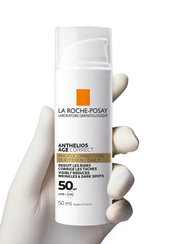 La Roche-Posay Anthelios Age Correct SPF50+ 50ml combineert breedspectrum-bescherming voor het gezicht met actieve ingrediënten om de huid te helpen verbeteren. Met meer elasticiteit en een stevigere huid, minder zichtbare rimpels en donkere pigmentvlekken. Een fantastische dagcrème met SPF, La Roche-Posay Anthelios Age Correct SPF50 is de ultieme anti-aging crème voor vandaag de dag. De hydraterende, niet-vette crème heeft een lichte, ademende textuur. De anti-aging crème is gemakkelijk aan te brengen, absorbeert snel. De huid voelt nadien zacht en comfortabel aan. Anthelios Age Correct SPF50 vermindert rimpels en pigmentvlekken, volgens onderzoek Uit onderzoek met dit product blijkt: - 15% rimpels*; - 26% pigmentvlekken**; +15% elasticiteit***. *Instrumentele fotoanalyse van de zichtbaarheid van rimpels en fijne lijntjes (24 vrouwen, 4 weken) **Klinische studie, 50 vrouwen, 4 weken ***Instrumentele test, 24 vrouwen, 4 weken.