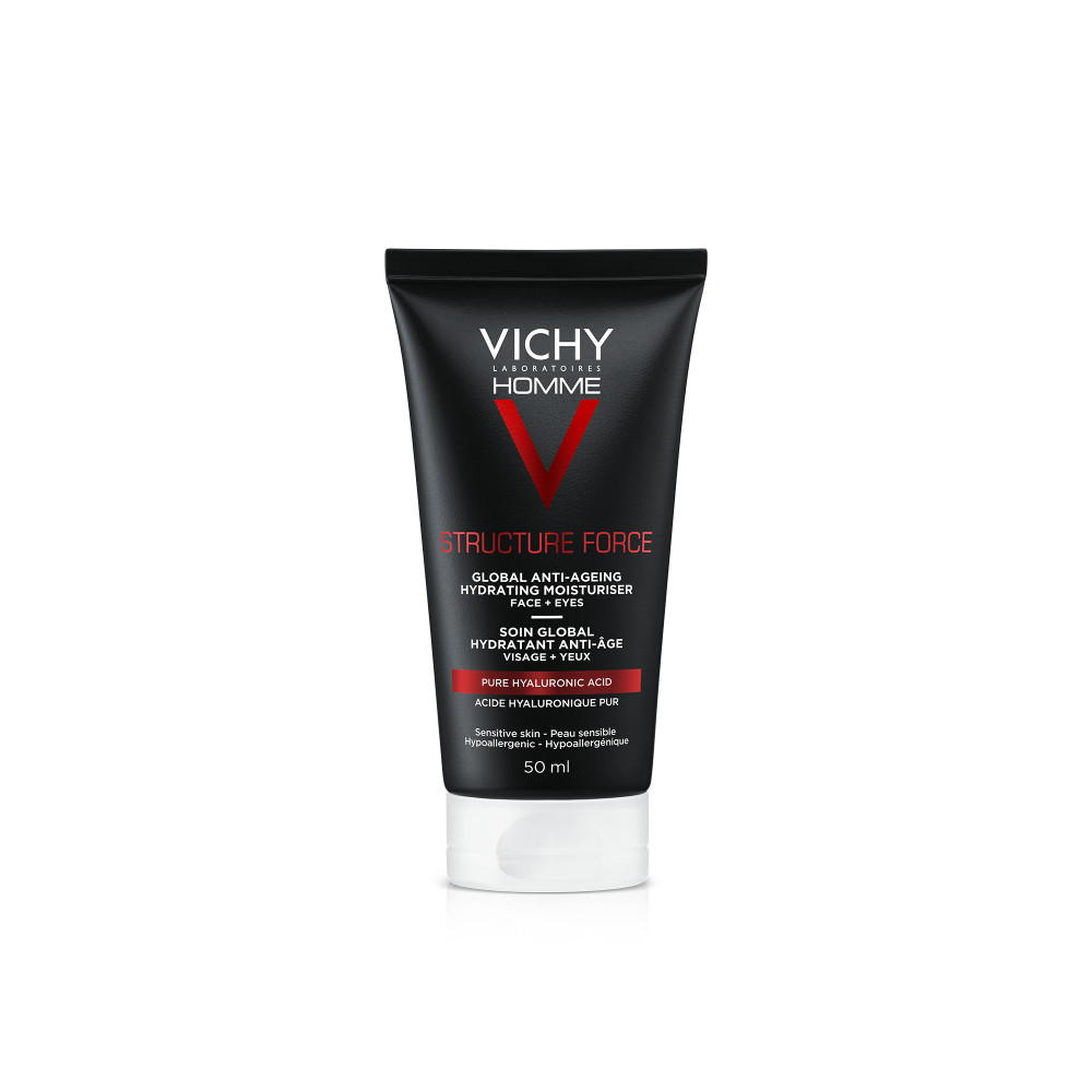 Vichy Homme Structure Force Dagcrème 50ml heeft zowel een romige als licht frisse textuur, die razendsnel door de huid wordt geabsorbeerd. Niet-plakkerig, niet-vettig, niet-comedogeen. De huid van mannen veroudert op een andere manier dan die van vrouwen, daarom behoeft deze zijn geheel eigen verzorging. Deze krachtige dagcrème Structure Force van Vichy werkt op niet één, maar vier tekenen van zichtbare huidveroudering waar mannen met het klimmen van de jaren mee te maken kunnen krijgen. Vichy Homme anti-age dagcrème vermindert rimpels en huidverzakking, volgens onderzoek Tegen rimpels: • +32% huid toniciteit* • -10% minder rimpels na 8 dagen** Anti-huidverzakking: • + 33% huidresistentie tegen knijpen*** • + 26% weerstand tegen tractie*** * Instrumentele test - 53 mannen. ** Instrumentele meting van het aantal rimpels - 53 mannen. *** Klinische score - 27 mannen - 4 weken.